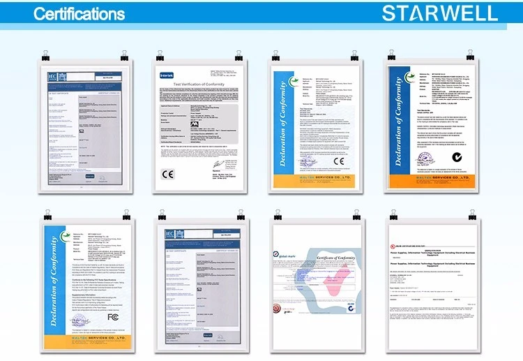 A4: Tá Deimhnithe SGS ISO9001, ROHS, TUV-CE GS, ETL FCC, SAA RCM, KC, PSE, BIS, UKCA srl. |