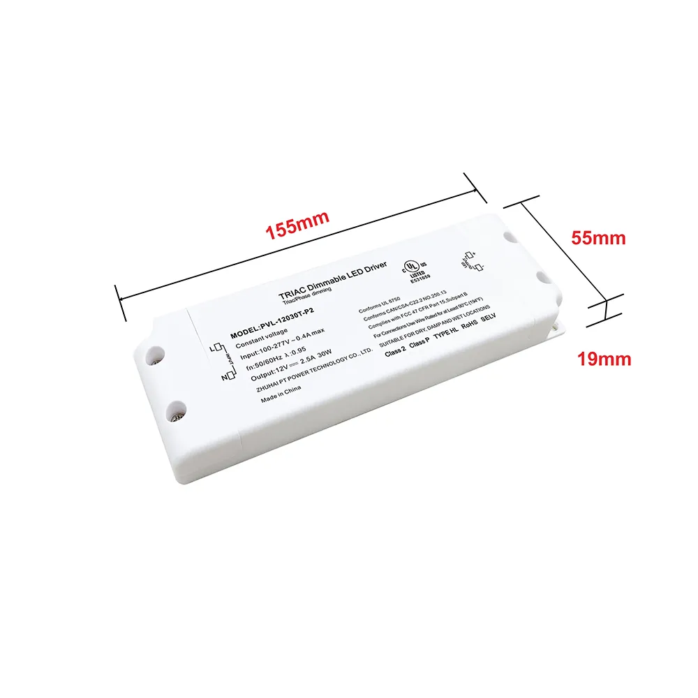 Ard-Éifeachtúlacht & Coigilt Fuinnimh · Solúbthacht láidir: Tá éifeachtacht chomhshó cumhachta chomh hard le 92% nó níos mó, tomhaltas cumhachta fuireachais <0.3W, ag comhlíonadh na gcaighdeán náisiúnta um éifeachtacht fuinnimh den chéad scoth; Raon ionchuir voltais leathan AC100-277V, ag luí le cumhacht cathrach domhanda; Is é 85 × 55 × 30mm méid coirp an tiománaí LED Constant Voltage, le trí mhodh suiteála, a chlúdaíonn athchóiriú tí, cásanna tráchtála agus innealtóireachta.