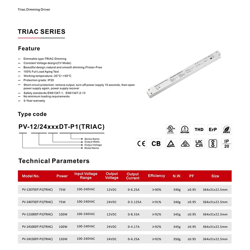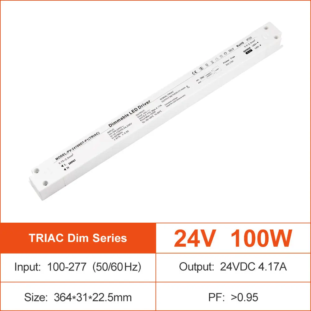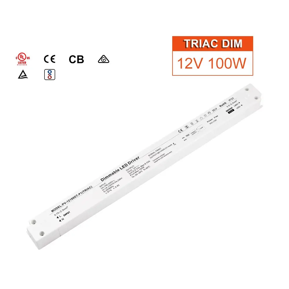 Ardfheidhmíocht d'Fheidhmchláir Éilitheacha Tá an tiománaí faoi stiúir dimmable 24V seo bunaithe ar shonraíochtaí teicniúla. Gnéithe sé ionchur AC uilíoch (100-250V), ag cinntiú comhoiriúnacht le greillí cumhachta ar fud an domhain. Le héifeachtacht ard suas le 90% agus ceartú fachtóir cumhachta (PFC) go minic níos mó ná 0.95, íoslaghdaíonn sé dramhaíl fuinnimh agus laghdaíonn sé an t-ualach ar do chóras leictreach. Is é croílár a fheidhmiúlachta an teicneolaíocht chun cinn TRIAC dimming (céim-gearrtha), a chumasaíonn, réidh, gan chaochaíl dimming ó 0% go 100% nuair a péireáilte le dimmmers balla caighdeánach, a cheadaíonn cruthú foirfe ambiance. Ar mhaithe le marthanacht i dtimpeallachtaí éagsúla, tá sé ar fáil i imfháluithe ó IP20 caighdeánach go tithíocht alúmanam láidir rátáil IP67, a chosaint i gcoinne deannaigh agus taise lena n-úsáid laistigh agus lasmuigh.