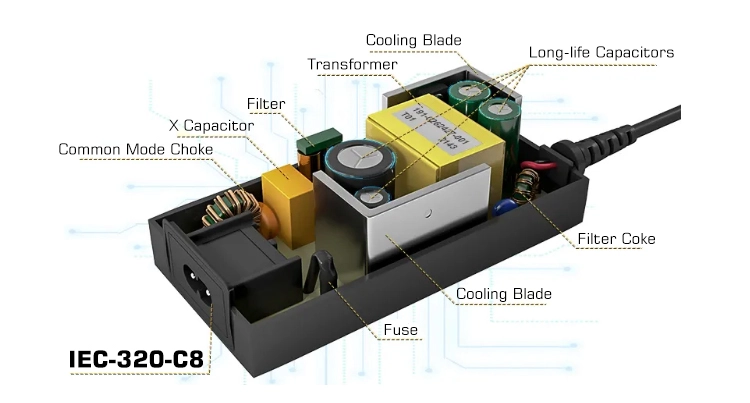 Tá calafort ionchuir cumhachta caighdeánach IEC C6 agus cónascaire aschuir DC 5.5 * 2.1mm ag an adapter cumhachta deisce STARWELL 150W - a fheidhmíonn mar réiteach cumhachta gairmiúil le haghaidh feistí ardchumhachta. Tá cruinneas aschuir voltais 150W AC/DC adapter cumhachta chomh hard le ± 2% agus tá an éifeachtacht chomhshó cumhachta níos mó ná 90%. Tá sé tar éis deimhniú CE agus FCC a rith chun sábháilteacht a chinntiú. Tá an t-oiriúnóir cumhachta STARWELL oiriúnach le haghaidh feistí a chumhachtú ar fud cásanna oifige, siamsaíochta agus tráchtála, is rogha éifeachtach ó thaobh costais é d'oiriúnóirí bunaidh nó leathnú ar riachtanais chumhachta ilfheiste.