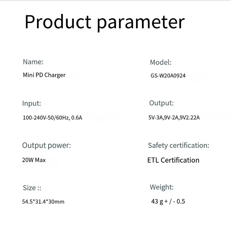 Tacaíonn Charger Tapa breiseán 20W tSeapáin ar ardchaighdeán STARWELL, ar a dtugtar charger tapa 20W PD freisin le calafoirt USB-C agus Cineál-C le muirearú tapa ar iPhones agus feistí Android, ag baint amach 0-50% i 30 nóiméad. Gnéithe sé cosaintí iolracha lena n-áirítear ró-reatha, ró-voltage, agus ciorcad gearr, a chinntíonn feidhmíocht sábháilte agus iontaofa. Déanta as ábhar PC fireproof, comhlíonann sé deimhnithe CE agus ETL, ag tairiscint comhlíonadh caighdeáin sábháilteachta an AE agus rochtain ar an margadh a fheabhsú.