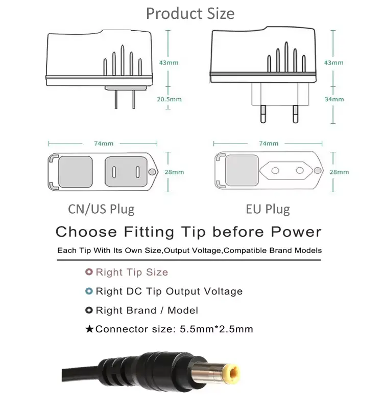 Tairgeann monaróir na Síne Starwell, Adaptóir Soláthar Cumhachta 24W d'ardchaighdeán, tá cineálacha plocóidí ag ár n-oiriúntóir seo, mar shampla plocóidí SAM, RA, AE agus AU.