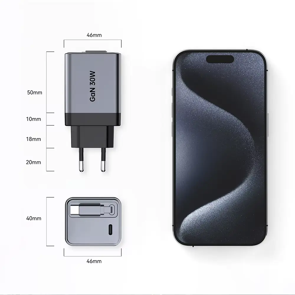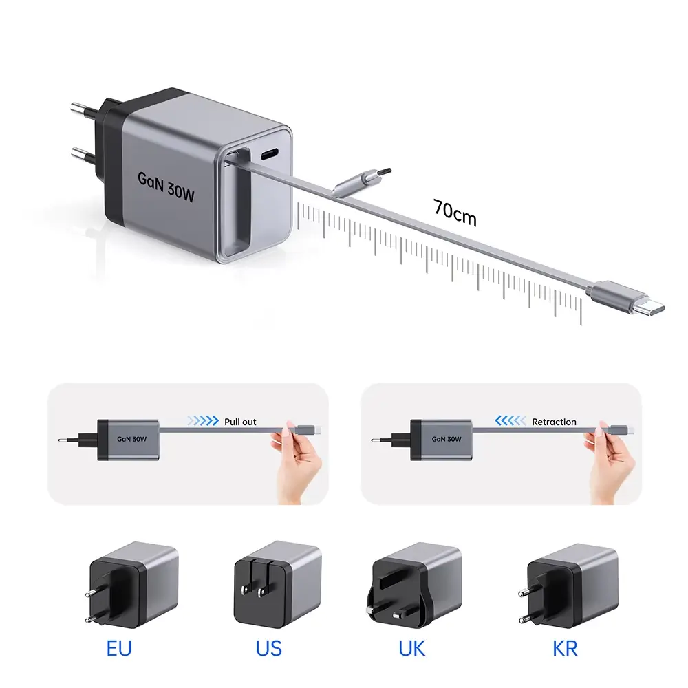 Ainm an táirge: 30W GaN PD StretchableCableFast Charger |