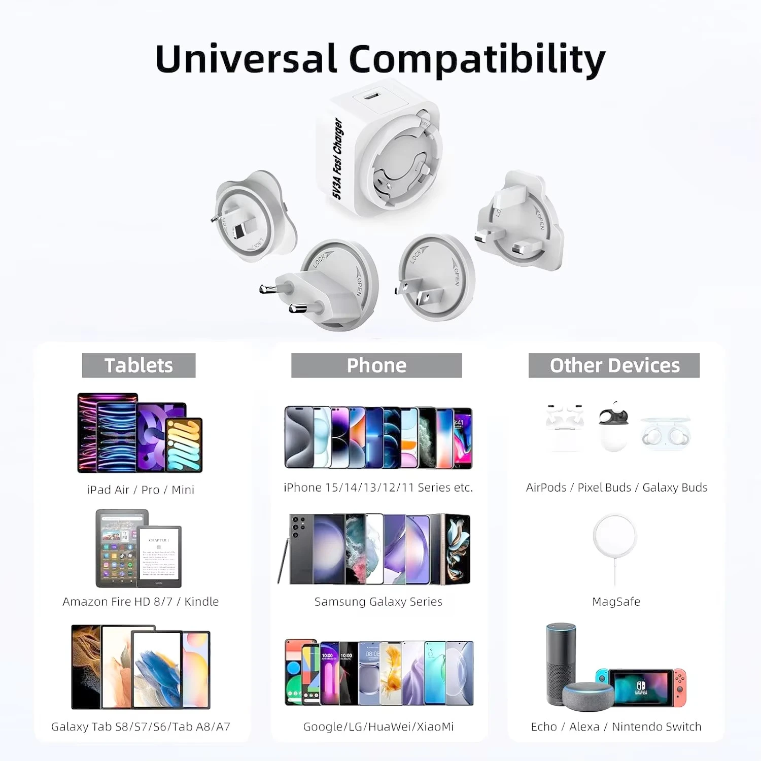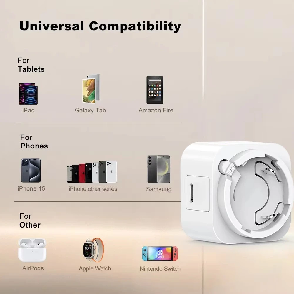 Ideal chun fóin chliste, táibléad, cainteoirí iniompartha agus leictreonaic eile a chumhachtú, comhcheanglaíonn an t-oiriúnóir seo luas, sábháilteacht agus solúbthacht dhomhanda i réiteach dlúth amháin.