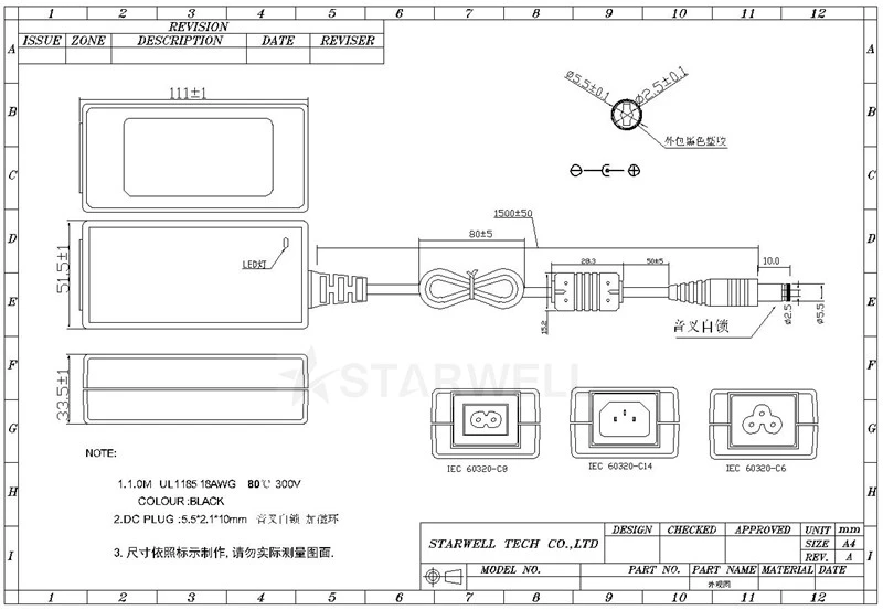 OEM: ceann DC Méid, fad cábla, dath an táirge, LOGO, etc